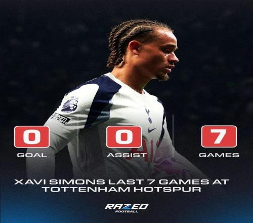 西蒙斯为热刺各项赛事出战499分钟,尚未取得进球。他只有一次助攻——是在对西汉姆联的英超首秀中,他开出的角球助攻萨尔头球破门。对于一个被寄予厚望、要填补球队创造力空缺的球员来说,这些数据并不理想。